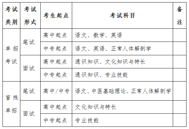 河南推拿职业学院单独招生考试科目一览表